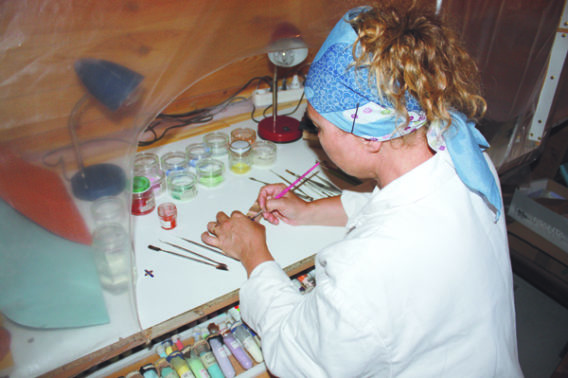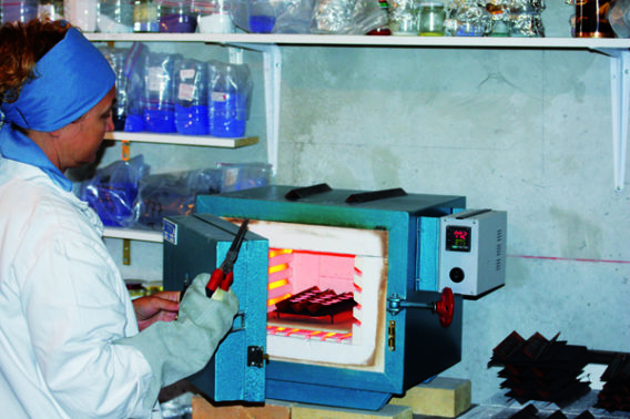 Plusieurs passages au four sont donc nécessaires pour parfaire la finition. Certaines pièces très colorées peuvent subir jusqu’à 8 cuissons différentes… pour faire place ensuite à l’éclatement et à la brillance de l’émail.
